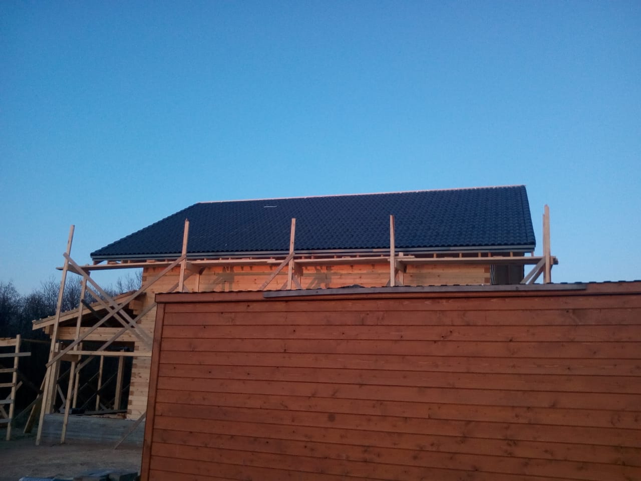 Строительство кровли. Есть только коробка
